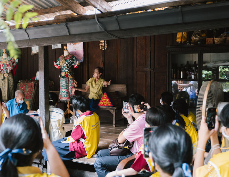 After discovering the issue, Rush gathered around friends in the design circle and formed a group called Sense of Nang Loeng to express the stories of Nang Loeng in various aspects. This is so visitors of Bangkok Design Week 2023 can experience with all five senses the essence of this historic district that has been in Bangkok for a long time. So they have worked on the ‘Sartorial’ project where they brought Chatree Dance Theatre (คณะละครชาตรี) to perform with a blend of contemporary style and developed the space in the community to allow for local-use as well as for temporary exhibition in the festival. They are also able to collaborate with professional architect Jun Sekino from Junsekino Architect and Design, professor Kwanporn Bunnag, and professor Chanon Wasinghon from Sripatum University to help revitalize the physical space of Nang Loeng to be more pedestrian friendly.